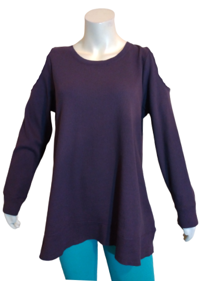 Dark Grape Cold Shoulder Waffle Weave Top 58% Cotton, 39% Polyester, 3% Spandex