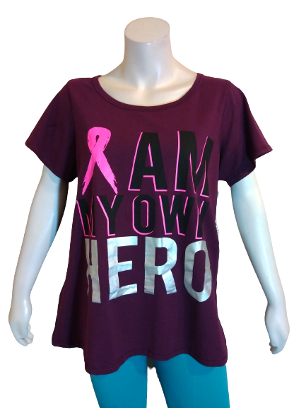 Sweet Fig I Am My Own Hero Cancer Tee 95% Cotton, 5% spandex