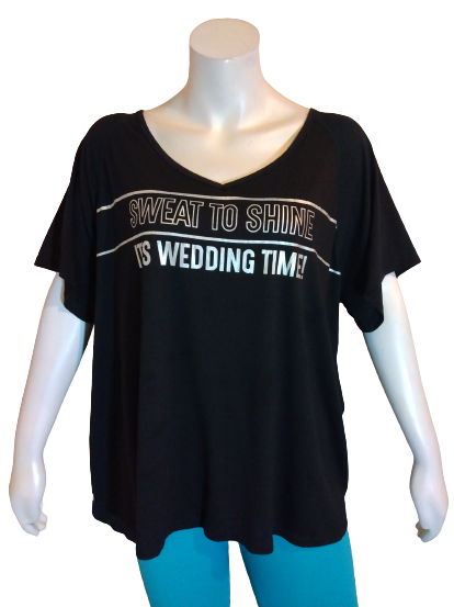 Black Sweat to Shine Bridesmaid Tee 79% Polyester, 17% Rayon, 4% spandex