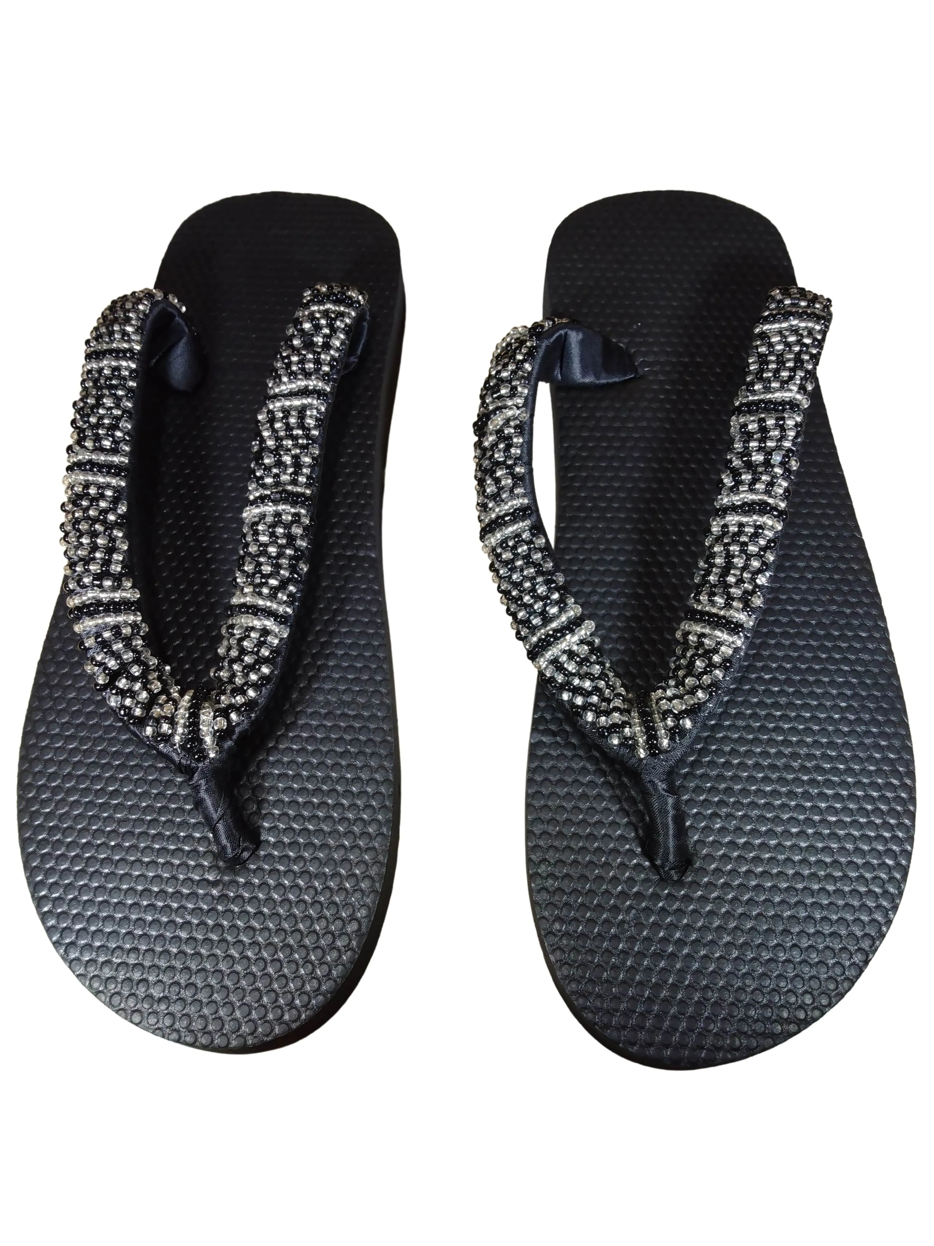 Beaded Unisex Flip Flop Black Clear Size 9.5 (measure 10")