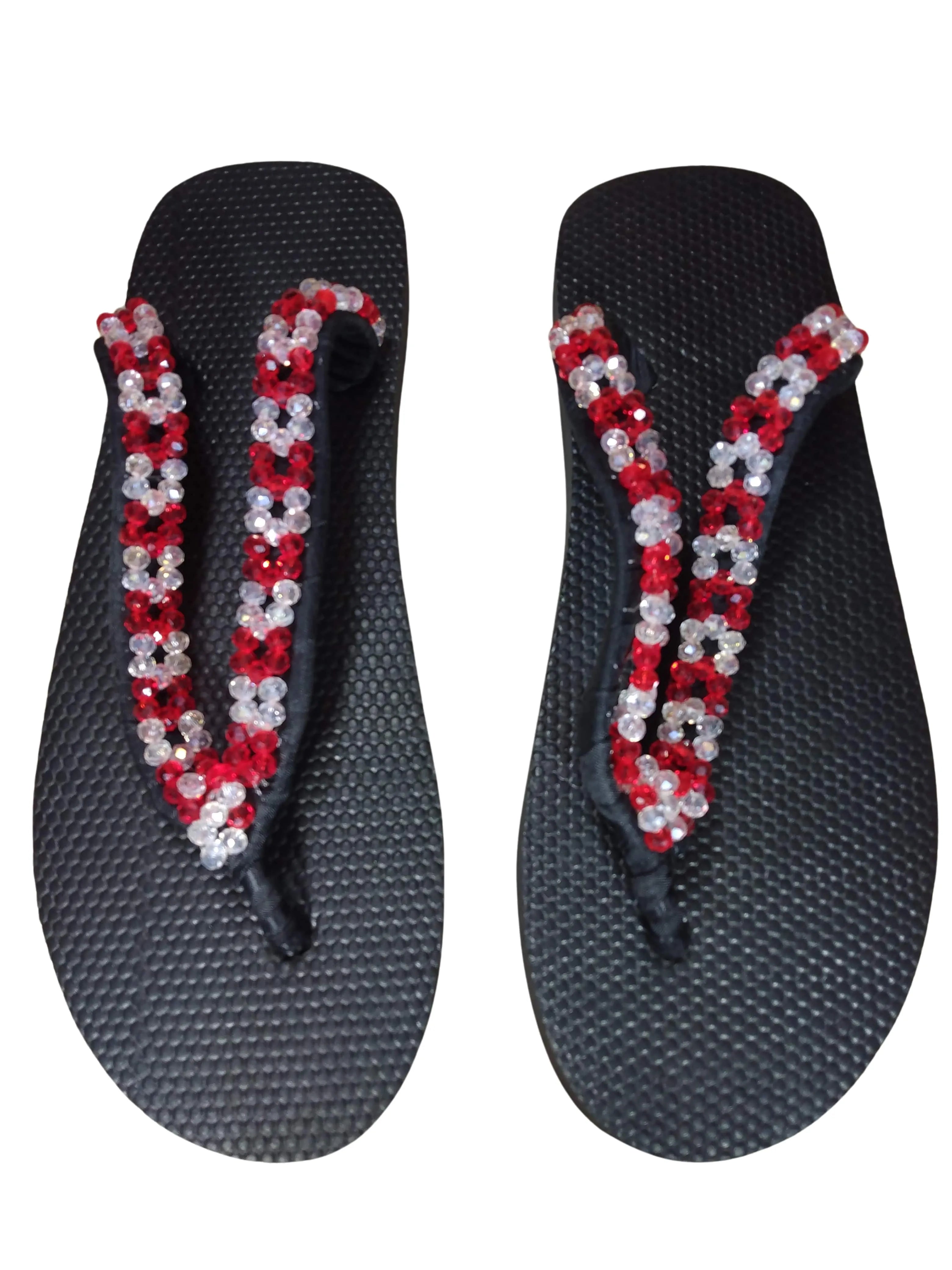 Beaded Unisex Flip Flop Red Clear Size 11 (measure 10.5")