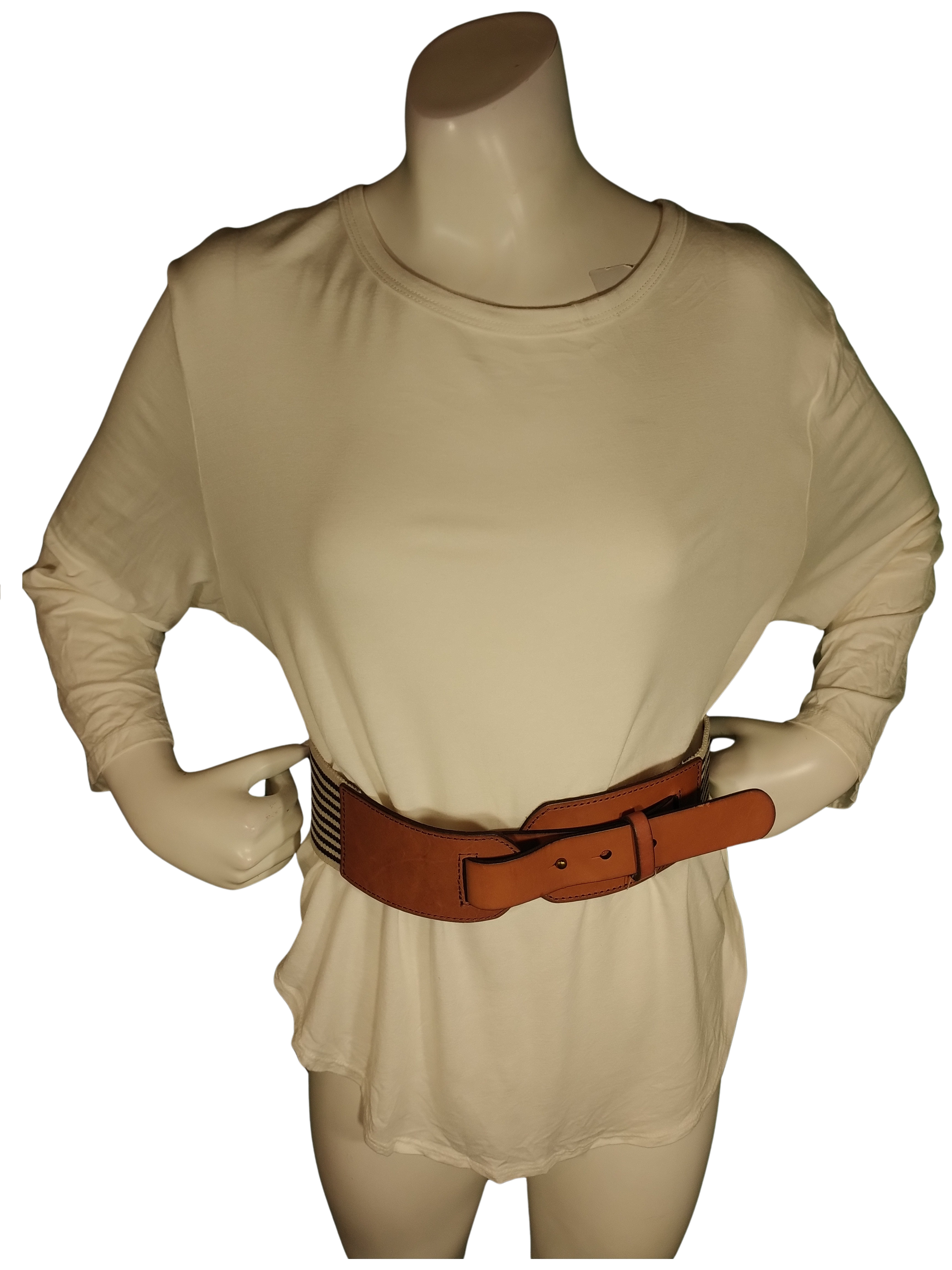 Fossil black/white stripe genuine leather ends belt