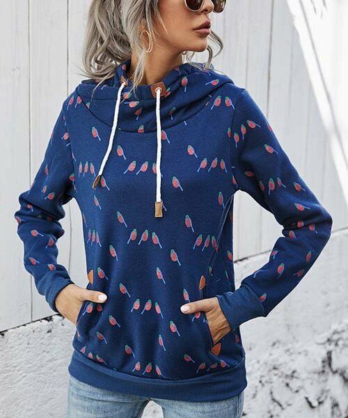 Blue Bird Front-Pocket Mock Neck Hoodie size L