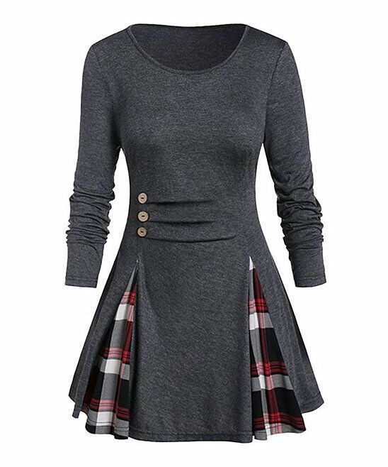 Gray & Red Plaid Pleat Button-Accent Top size 5XL