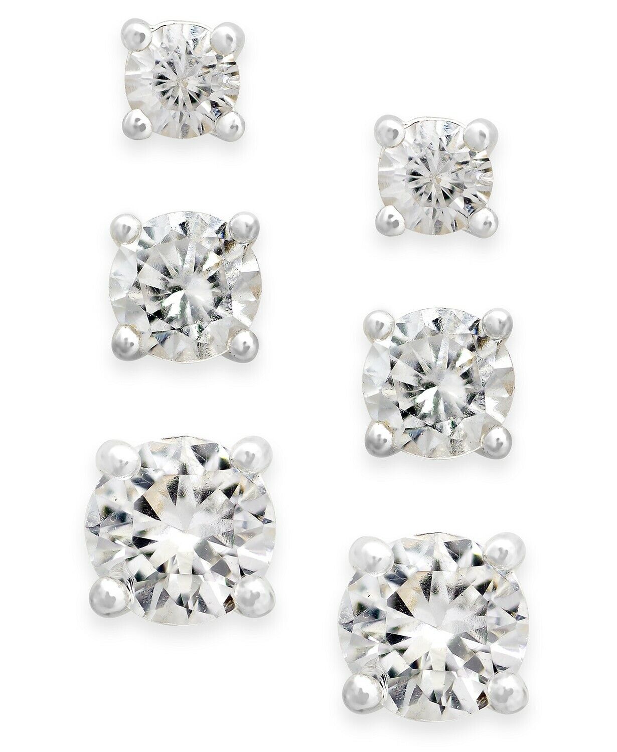 Charter Club Cubic Zirconia Stud Earring Set Silver (available in 3 set or 1 set)