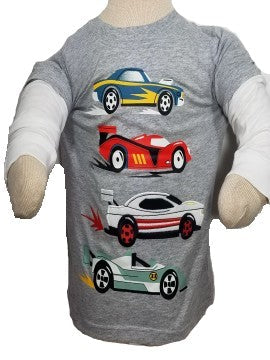 Grey Racecar/Green Football Long Sleeve Graphic Tees, 2 Pieces. 100 Cotton