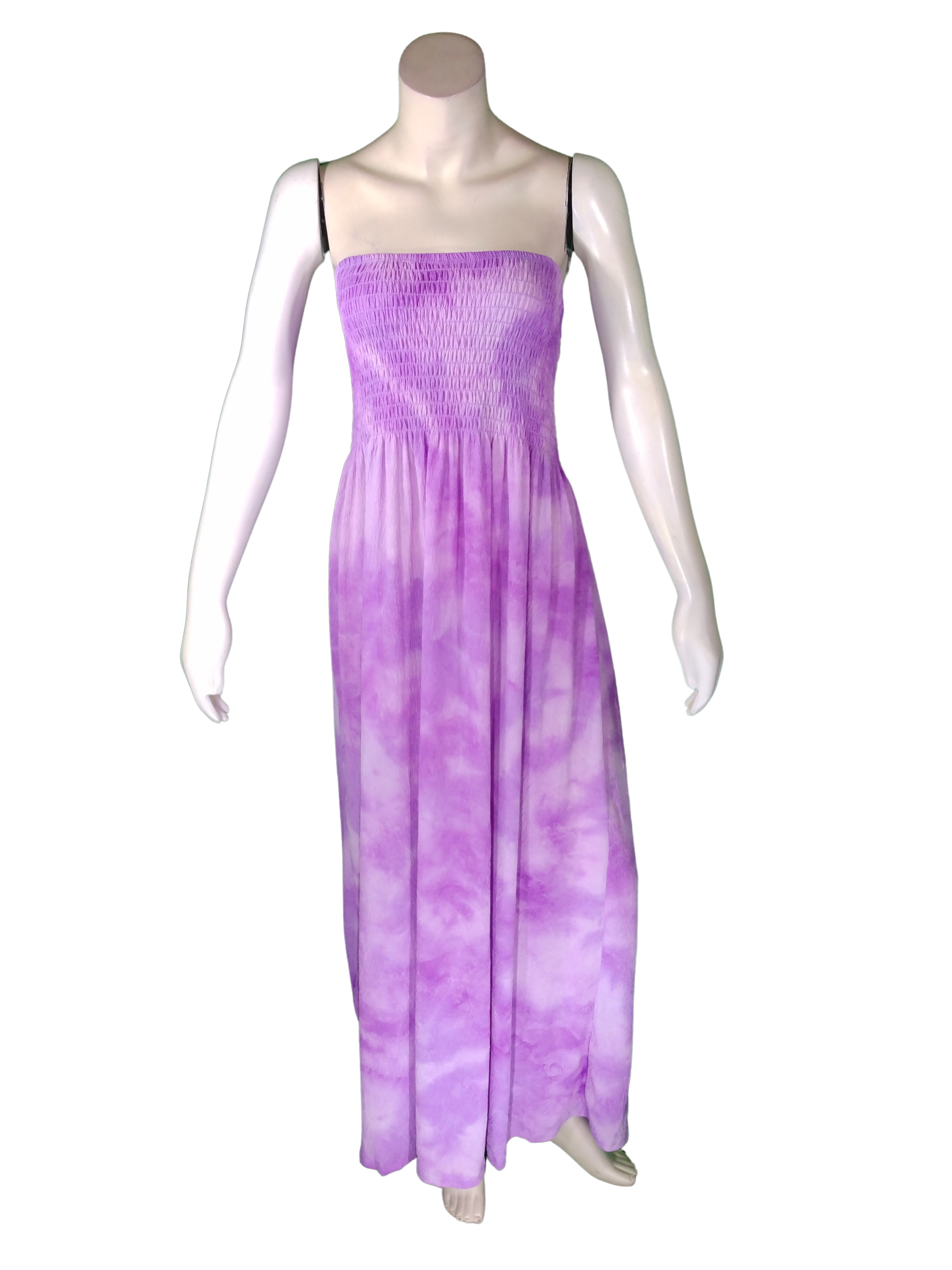 Add a touch of bohemian chic to your wardrobe with this purple tie-dye tube women's dress from Cleo Apparel. Made from a soft and comfortable blend of 95% cotton and 5% spandex, it's perfect for casual outings and layering.