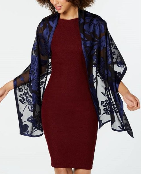 INC International Concepts Contrast Floral Burnout Scarf Wrap in Navy. Stylish burnout patterns provide effortless elegance on this wrap from I.N.C. International Concepts.