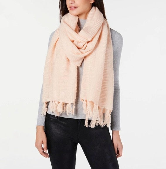 Cejon Solid Travel Fringed Scarf in Blush. Classic tassels define the stylish feel of this soft, travel-ready scarf from Cejon.