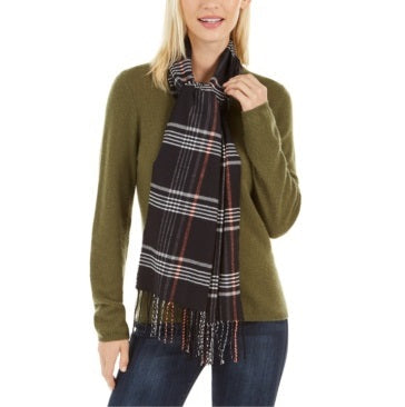Calvin Klein Modern Black Plaid Woven Scarf. Calvin Klein delivers a contemporary take on chilly-day comfort with this stylish woven scarf in a modern plaid design.