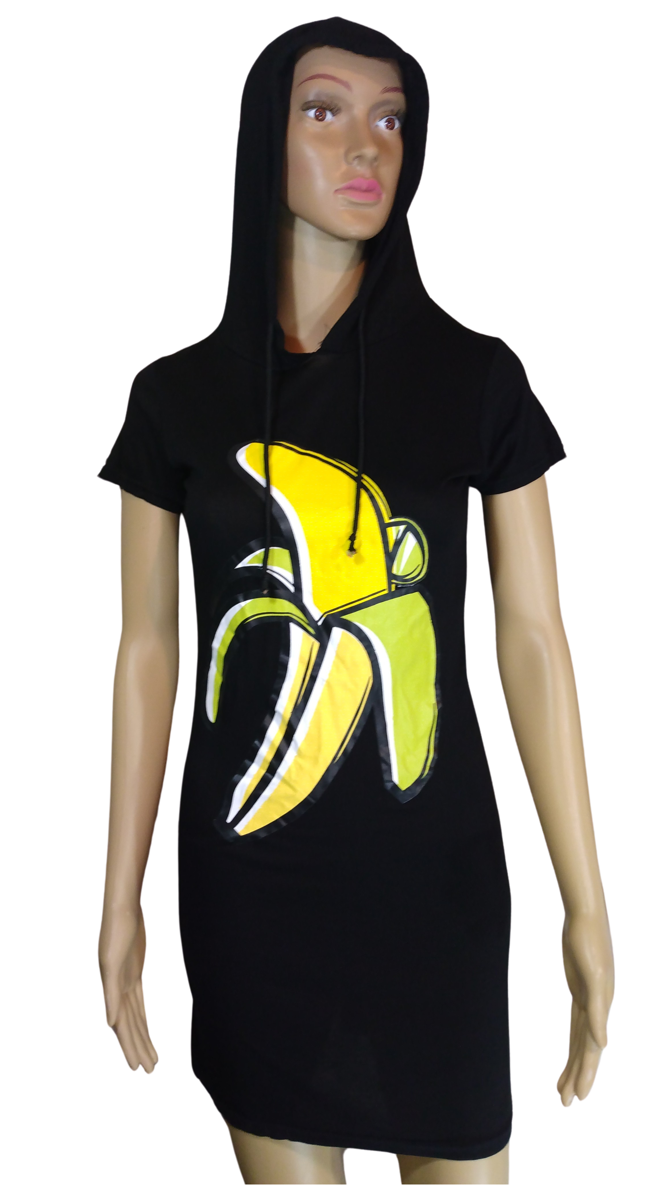Embrace playful style with the Diva General Black Girls Top Hoodie Tee featuring a charming banana graphic.