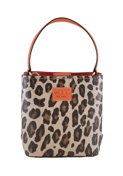 DKNY Bianca Small Orange Leopard Convertible Crossbody Bucket Bag with Removable Chain Strap