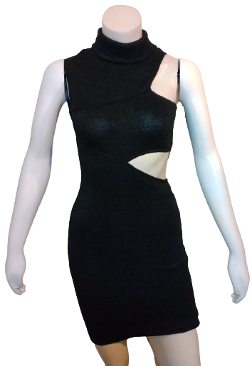 Black Cut out Turtleneck Evening Dress 100% Polyester