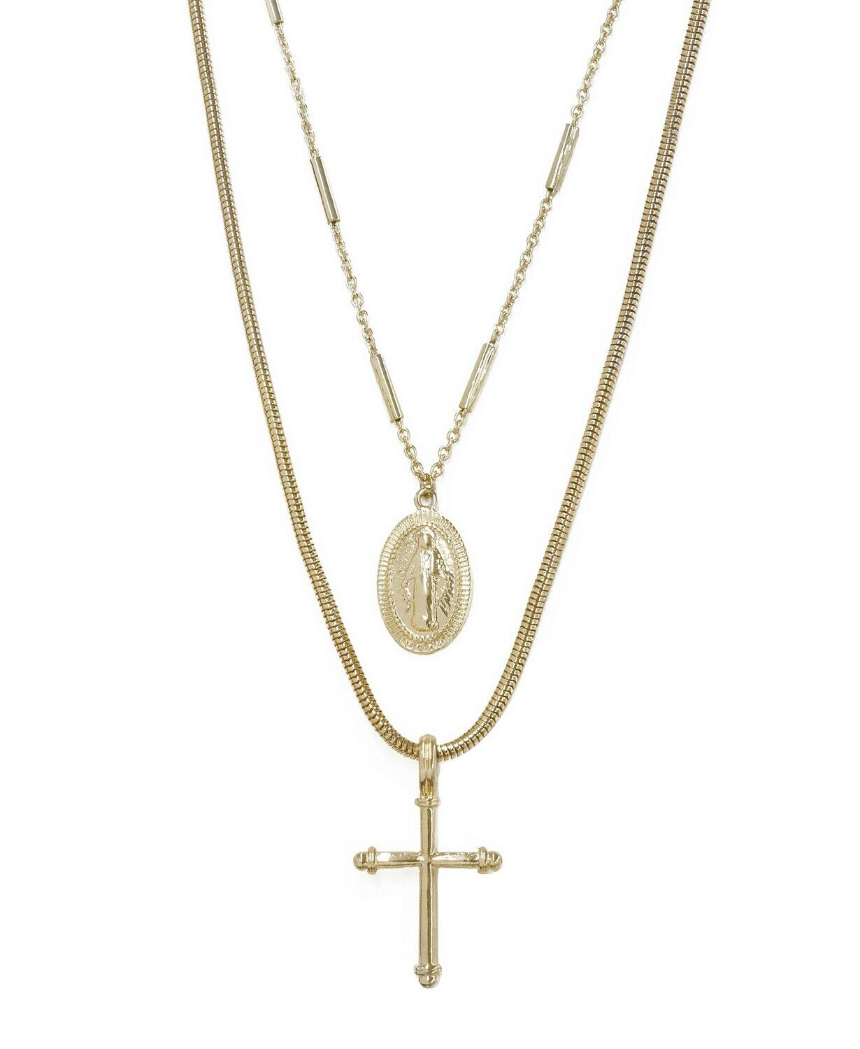 ETTIKA Like a Prayer Layered Chain Cross & Coin Necklace Gold