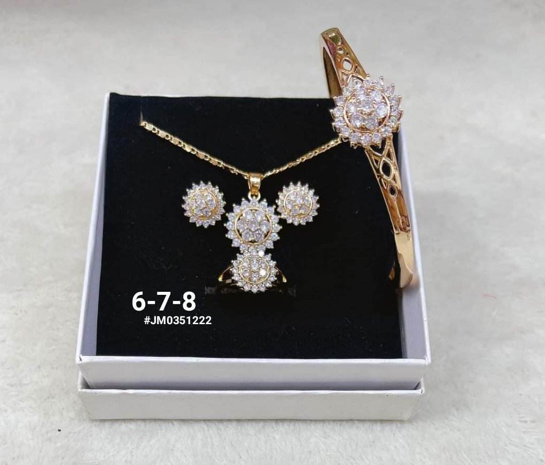 Be the life of the party in this Diva Collection beautiful jewelry like an upper-class woman. I can’t believe it is not gold. Doesn’t fade easily. . White stud earrings, pendant necklace, ring, bracelet