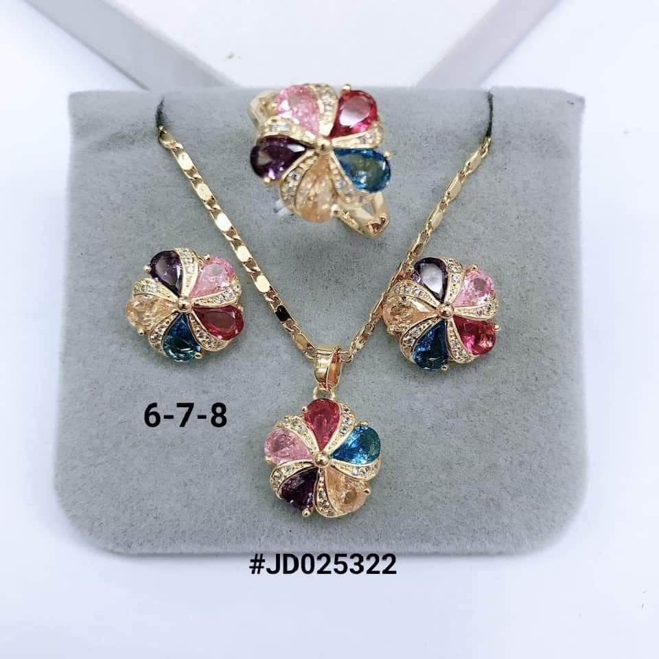 Be the life of the party in this Diva Collection beautiful jewelry like an upper-class woman. I can’t believe it is not gold. Doesn’t fade easily. . Five-Color stud earrings, pendant necklace, ring
