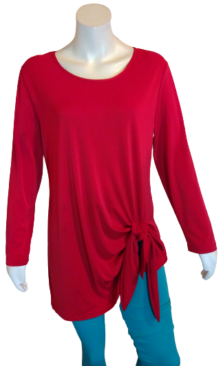 Red Tunic Knot Tie Blouse 95% Polyester, 5% Spandex