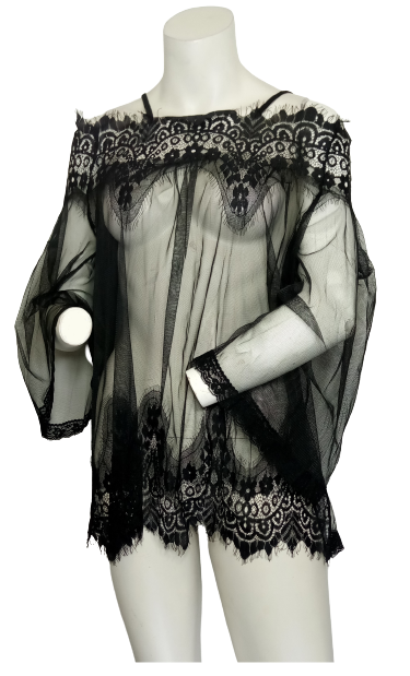 Floral Pattern Top with Sleeves and Panty Set Black