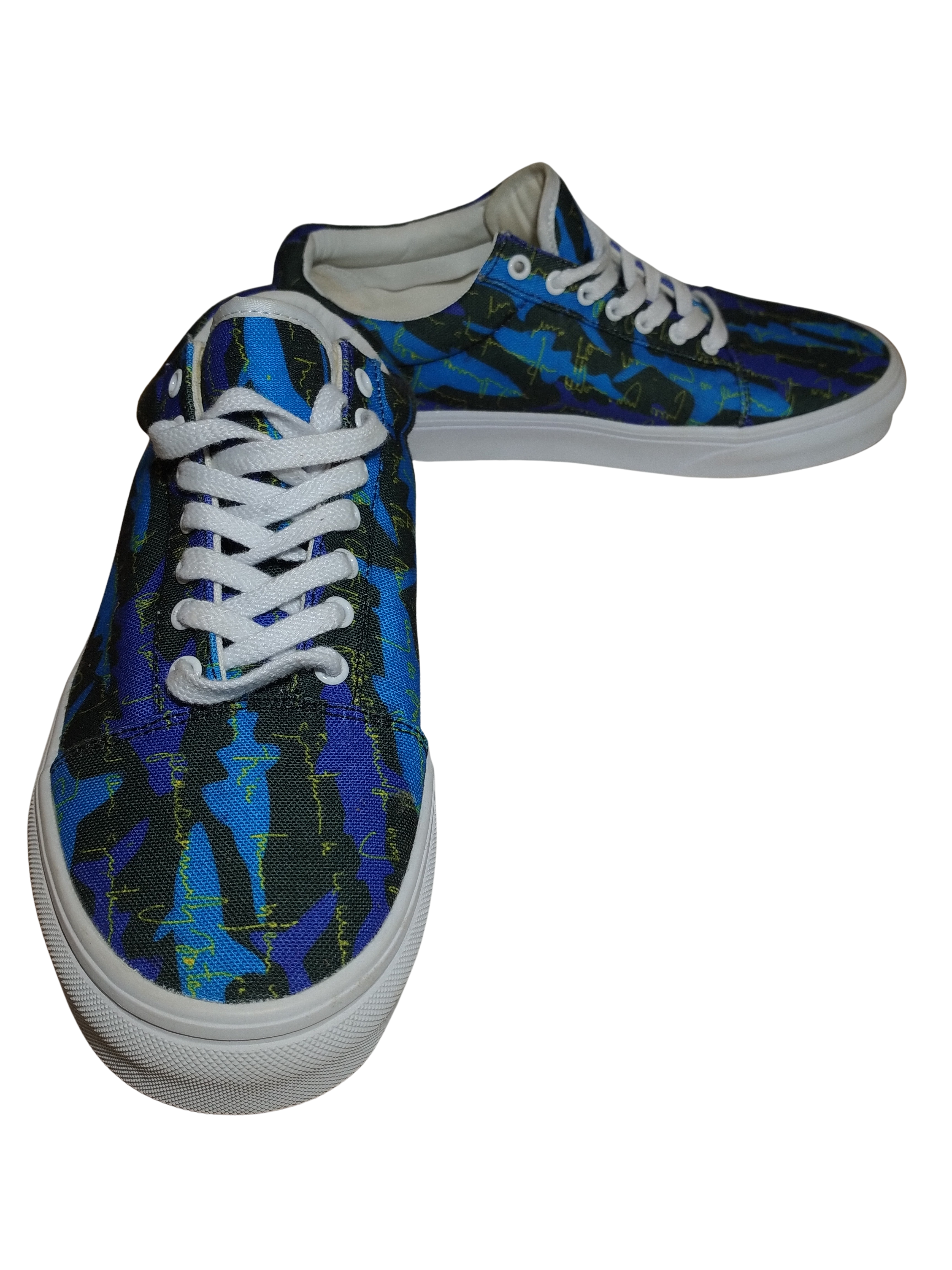 Three In Teal/Black/Purple Shark Pattern Lace Up Shoes