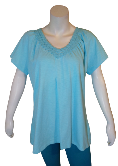 Aqua Women's Tee with Applique Neckline 100% Cotton