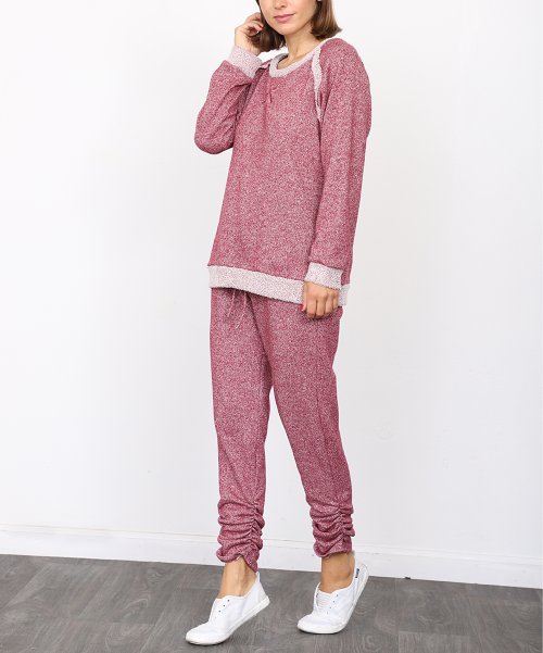 Burgundy Shimmer Raglan Pullover & Ruched-Side Joggers