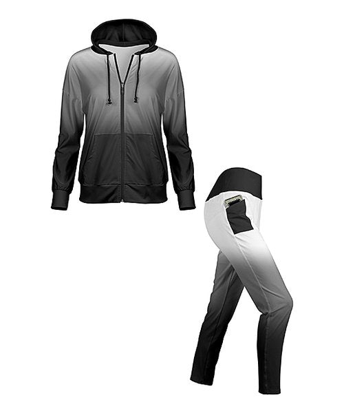 Black & Gray Ombré Zip-Up Hoodie & Pocket Leggings