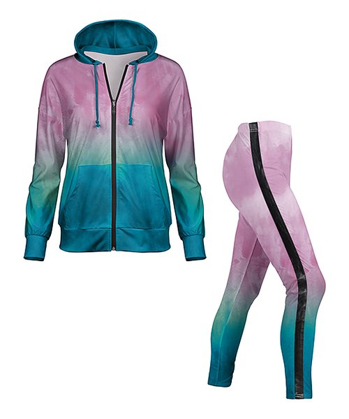 Pink & Teal Ombré Zip-Up Hoodie & Leggings