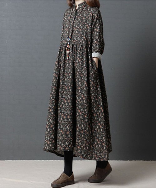 Black Floral Button-Front Pocket Linen-Blend Maxi Dress