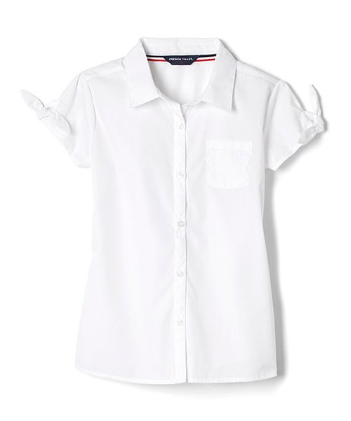 White Bow-Accent Short-Sleeve Button-Up