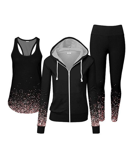 Black & Pink Sparkle-Print Zip-Up Hoodie Set