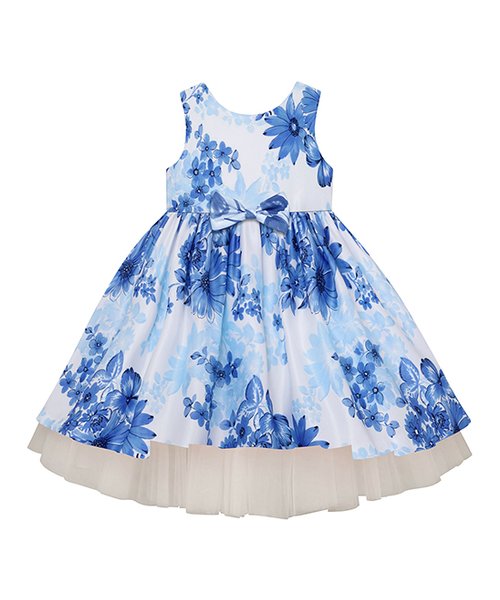Blue Floral Pleated Sleeveless A-Line Dress