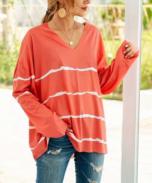 Orange Stripe V-Neck Top