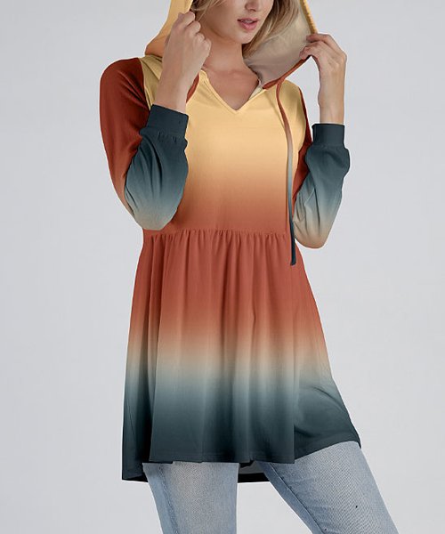 Navy & Rust Tie-Dye Empire-Waist Hoodie