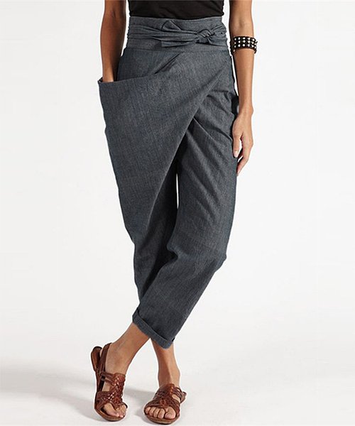 Gray Pocket Asymmetrical Layered Lounge Pants
