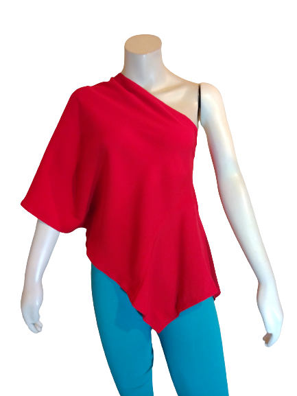 Red One Shoulder Top 100% Polyester
