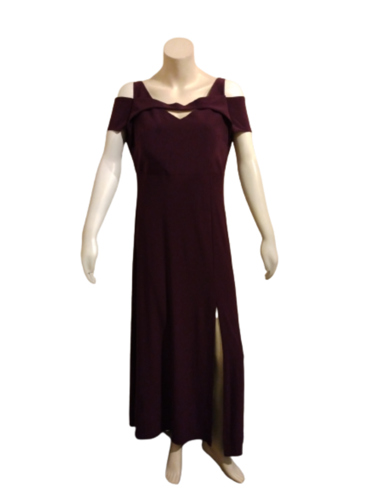 Purple Cut out Shoulder with Side Slit Gown 95% Polyester, 5% Spandex