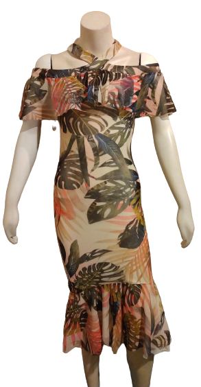 Petal Pink Off Shoulder Leaves Dress 100% Nylon