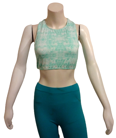 Mirage Teal Curacoa Scuba Crop Top 84% Nylon, 16% spandex
