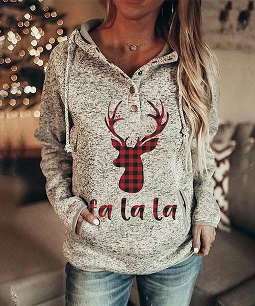 Gray & Red Plaid Reindeer 'Fa La La' Hoodie size XL