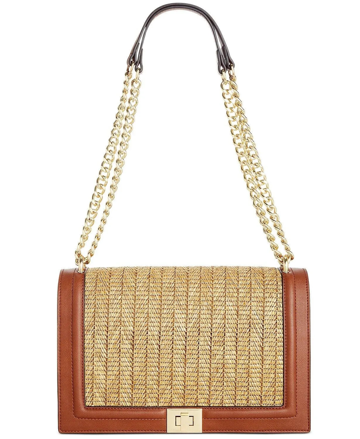 Natural Beauty: INC Straw Crossbody with Leather Trim New!