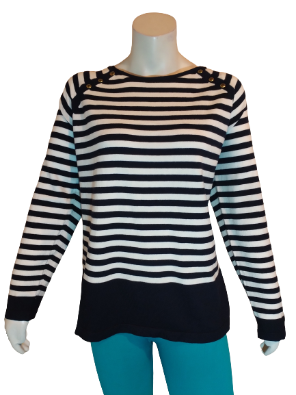 Order your Karen Scott Woman Black & White Striped Sweater today and add a touch of timeless elegance to your wardrobe! 🖤🤍🇫🇷👗