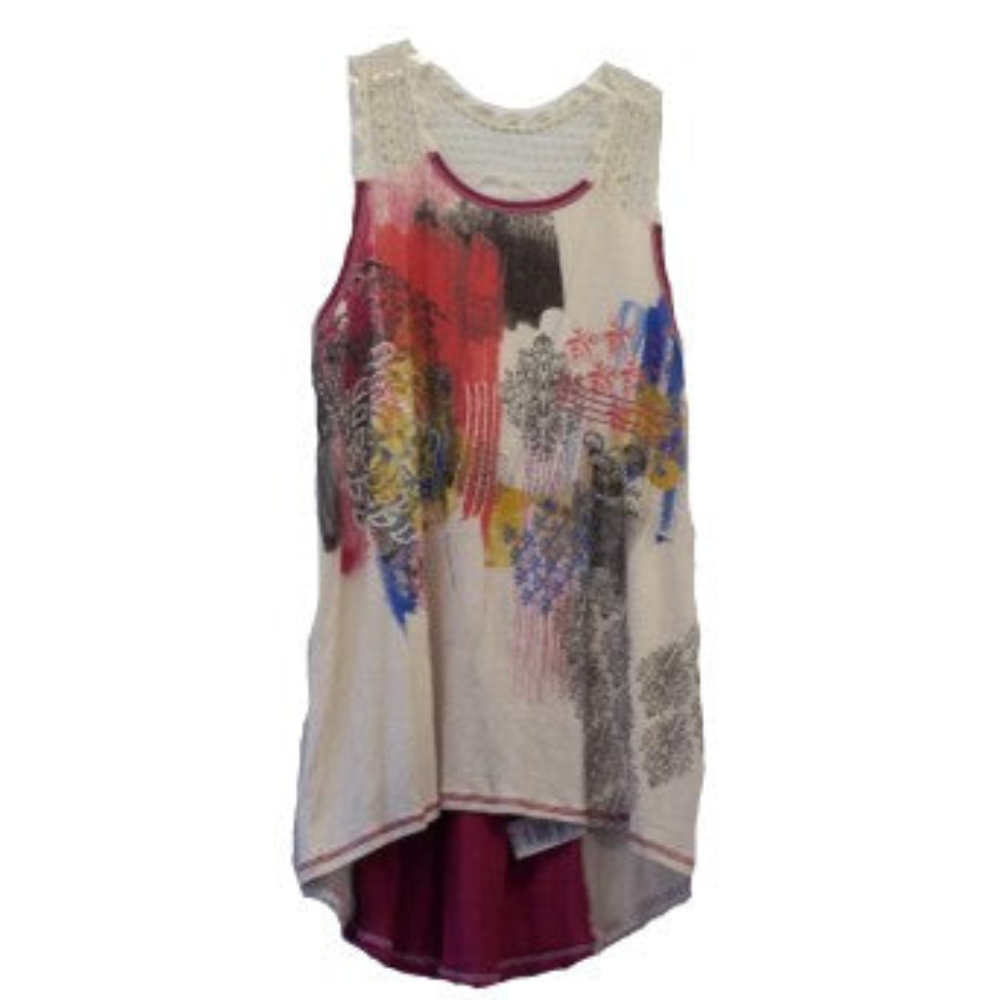 Libertalia Fushia/Cream Printed Crocheted Tank Top