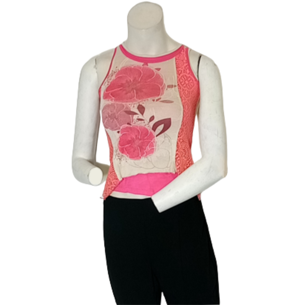 Libertalia Cream/Pink Lace/Floral Print Sleeveless Blouse