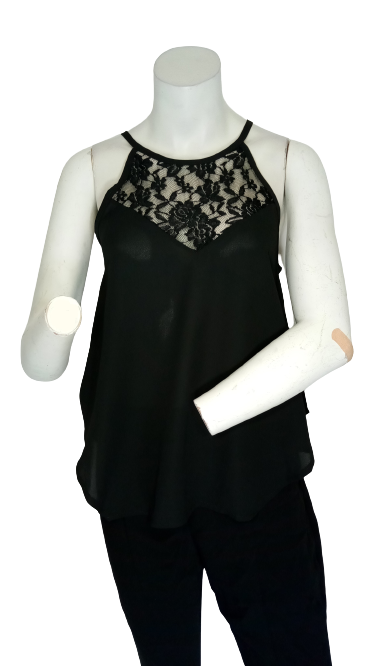 Zenana Outfitters Black Lace Top Spaghetti Strap Blouse