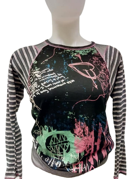 Libertalia Black/Gray Long Sleeve Striped Printed Blouse