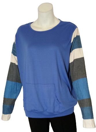 Blue Blue Striped Pocket Sweatshirt 28% PPT, 17% Nylon, 55% Viscose
