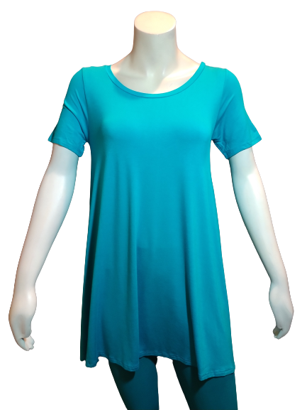 Love In Turquoise Short Sleeve Long Cotton Blouse