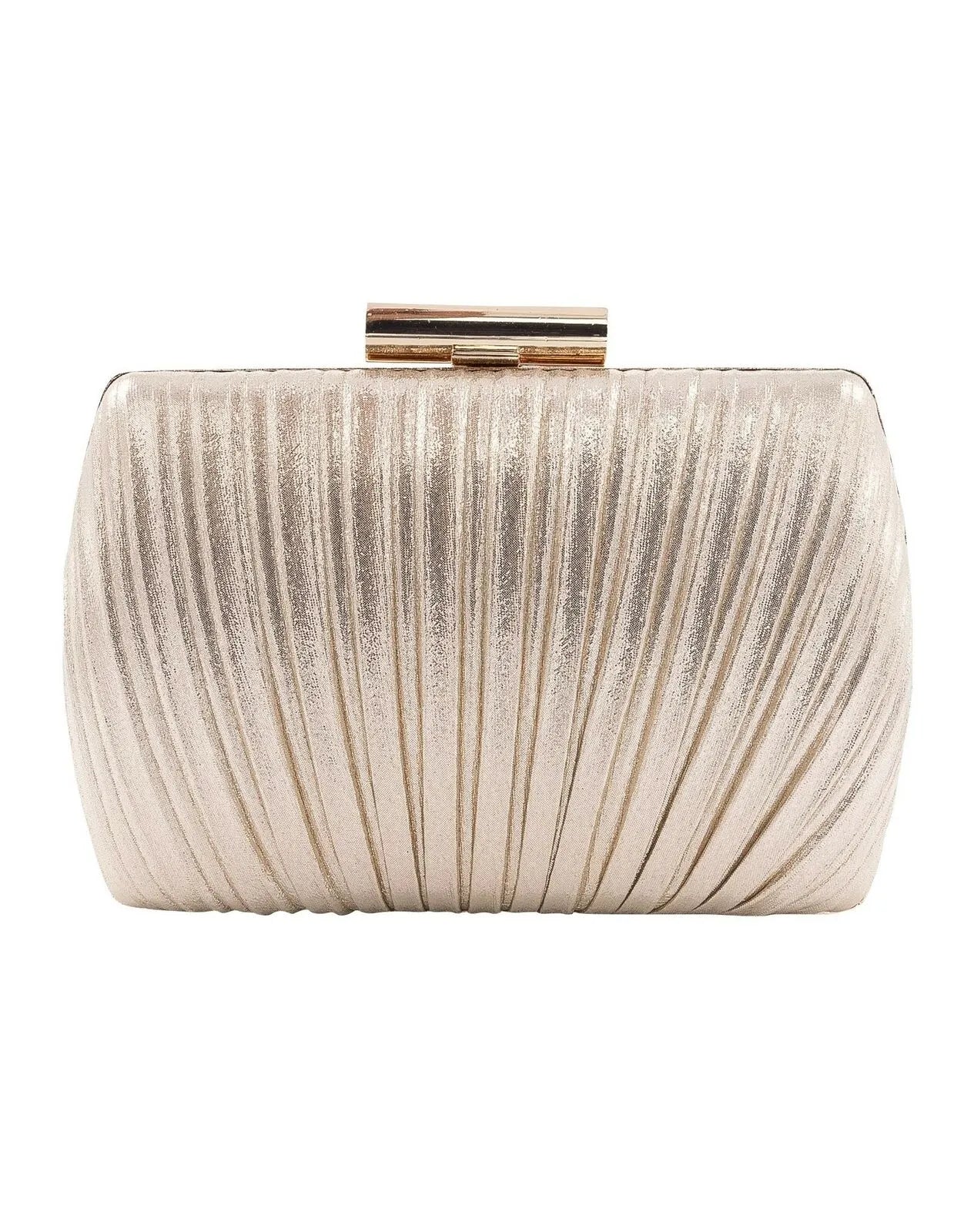La Regale Shimmer Metallic Peacock Pleat Minaudiere Pink & Gold