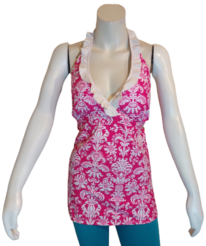 Pink Tapestry Ruffle Wrap Swim Top 80% Nylon, 20% Spandex
