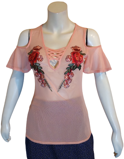 Peach Tulle Tank with Applique Flowers 96% Polyester, 4% Spandex